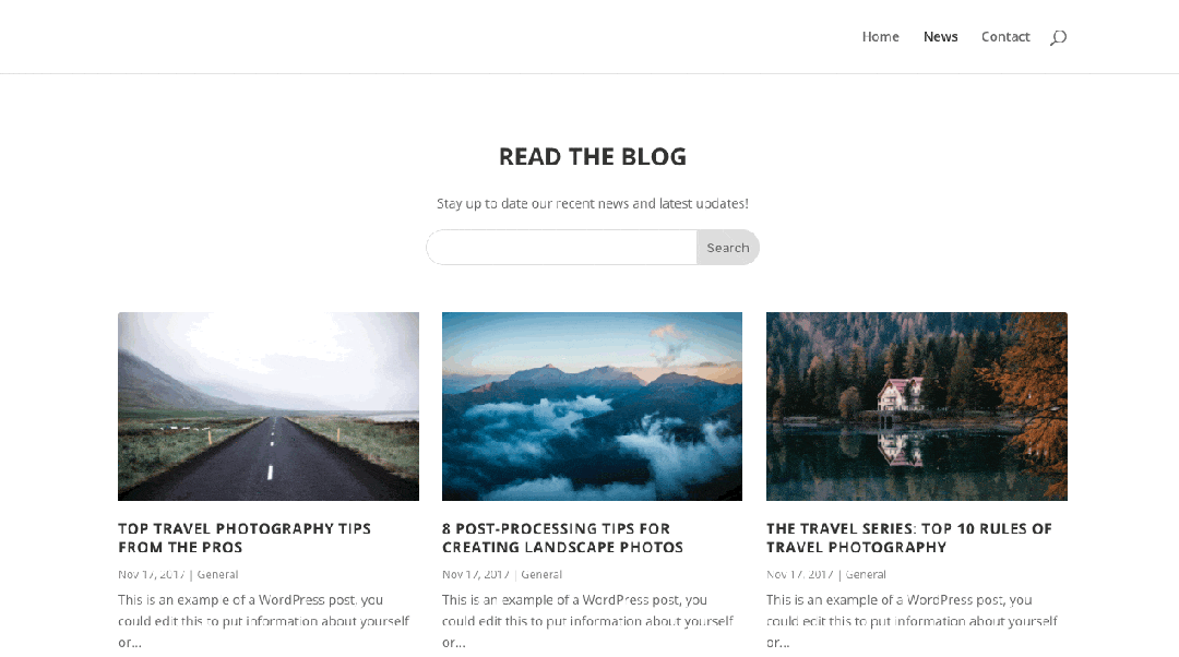 Adjon stílusos új megjelenést a blogfolyamának a Blog Feed Masonry modul használatával. A bejegyzés címének vagy kivonatának karakterhosszúsága ellenére a bejegyzés előnézetei automatikusan alkalmazkodnak a rendelkezésre álló helyhez, így biztosítva, hogy blogoldala hibátlanul nézzen ki.