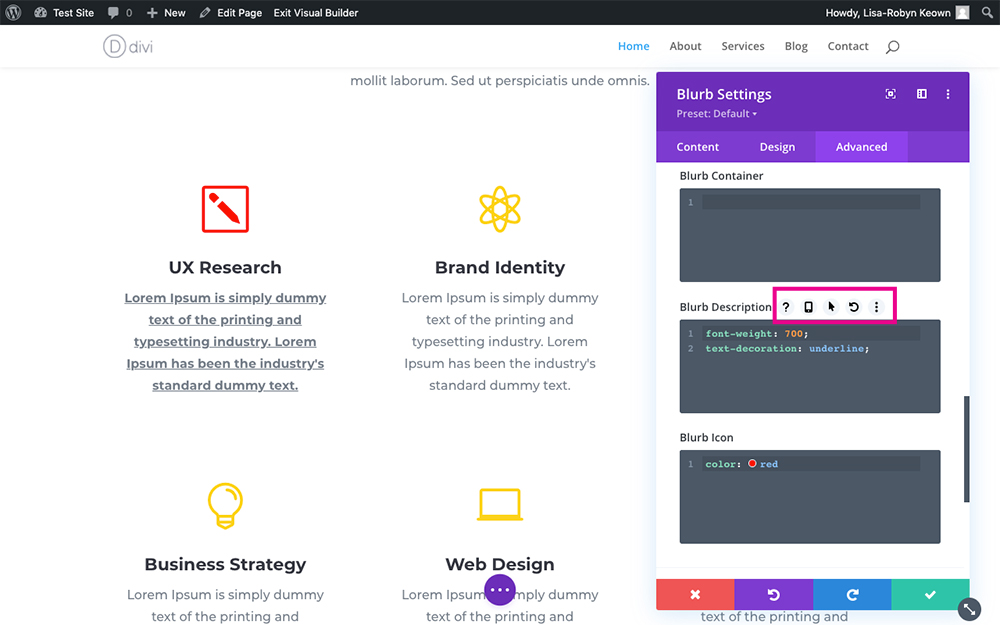 - Adjon hozzá további választókat minden modulhoz a Divi Builder Advanced Custom CSS lapján